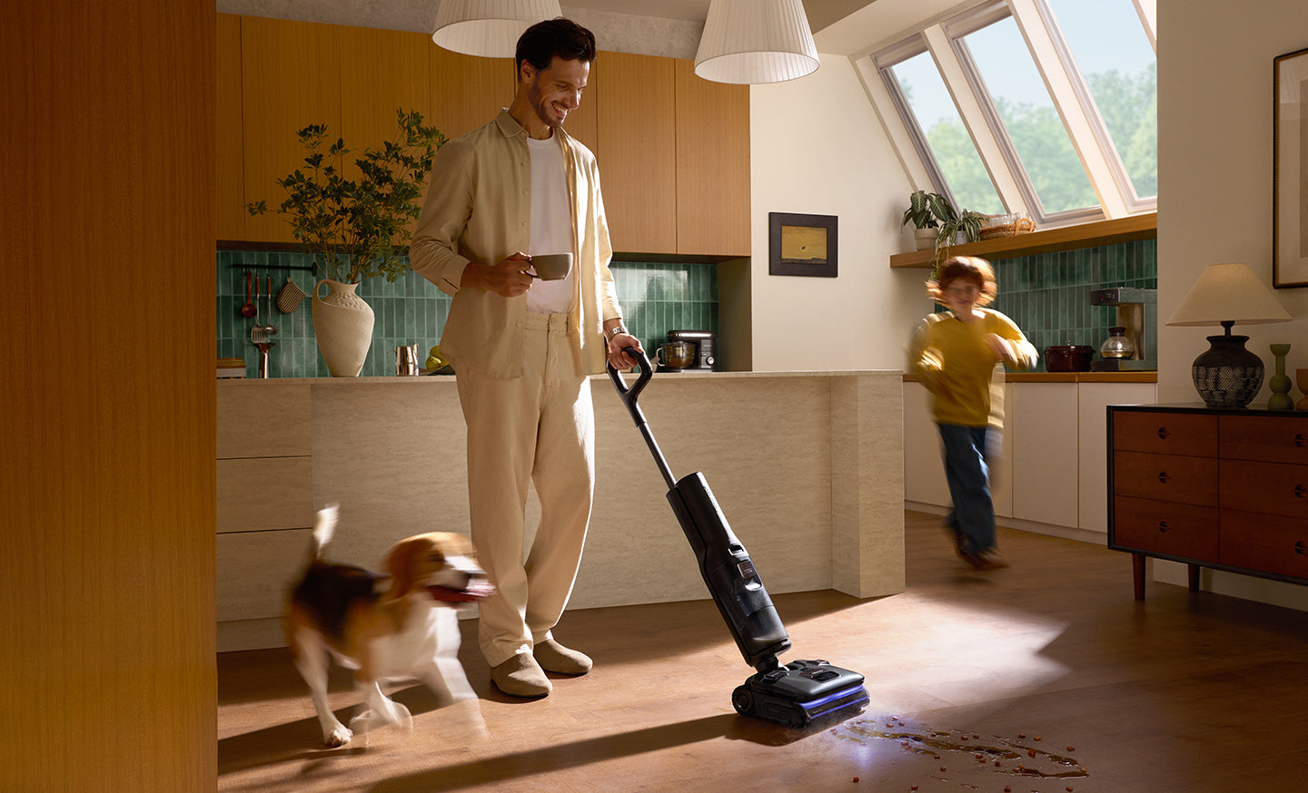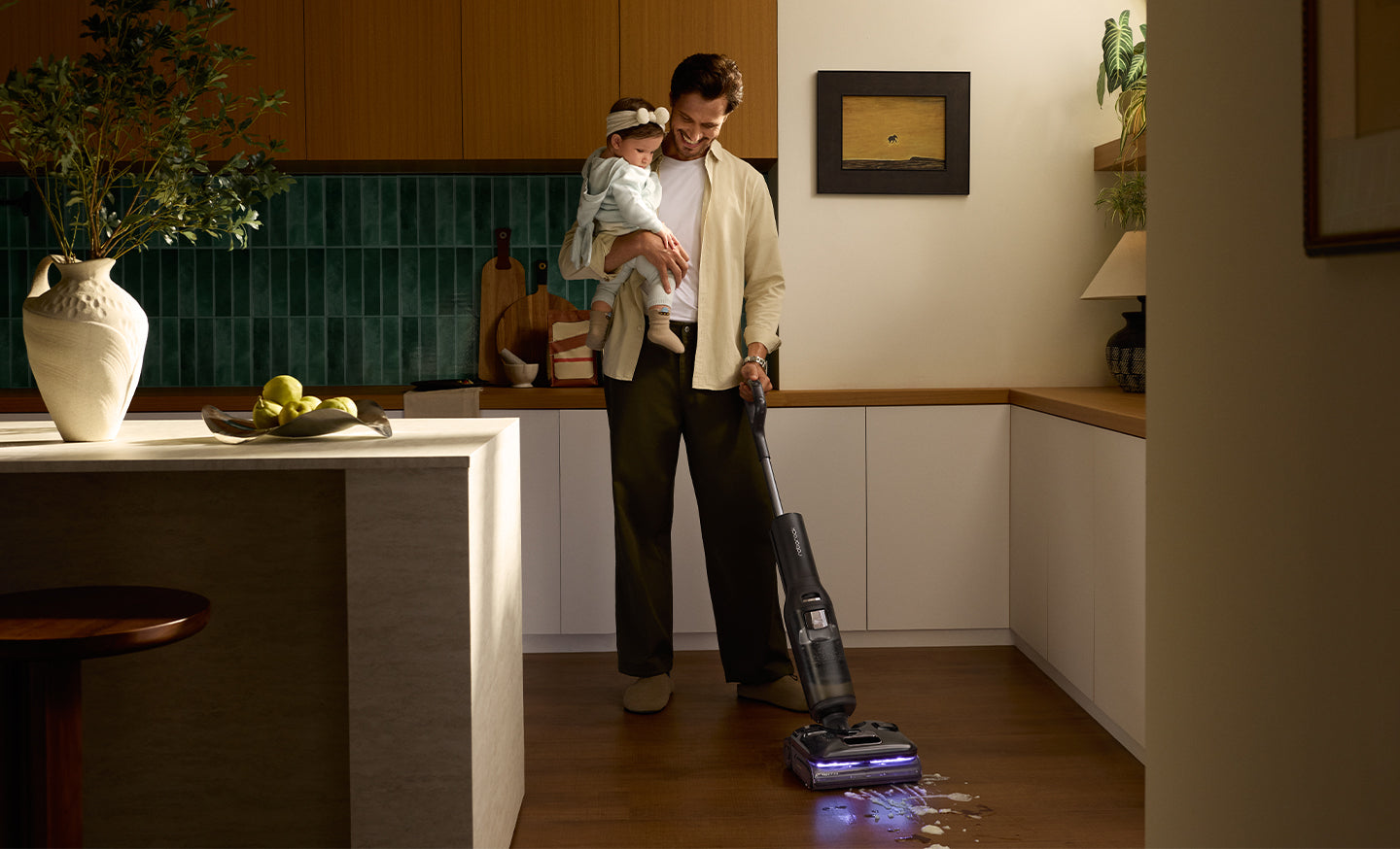 La potencia de aspiración mejorada elimina la suciedad diaria, tanto húmeda como seca, en una sola pasada.